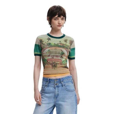 Desigual Lucca 23SWTKAD 1970s Flower Orange Knit Tshirt