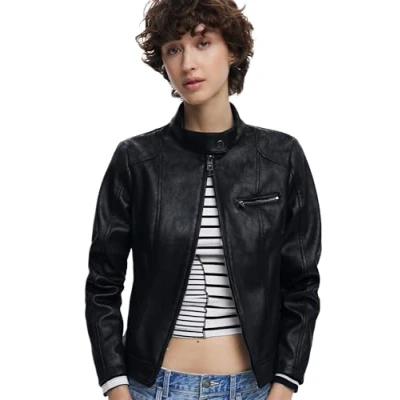 Desigual Atlanta Mandarin Collar Biker Jacket 25SWEW46 Red