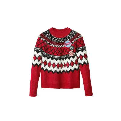 Brand: Desigual Gender: Women Type: Knitwear Season: Fall/Winter PRODUCT DETAIL • Color: red • Pattern: geometric • Sleeves: long • Neckline: round neck COMPOSITION AND MATERIAL • Composition: -39% acrylic -3% elastane -1% wool -57% polyester • Washing: machine wash at 30°