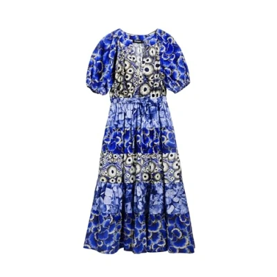 Desigual Cells Long Floral Dress Designed by Mr. Christian Lacroix 25SWVW02 Blue