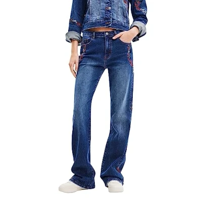 Desigual Cordoba Embroidered Flowers Wide Leg Jeans 23WWDD42 Blue