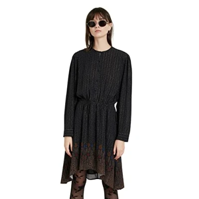 Desigual Delhi Long Sleeved Dress with Metallic Fibres 20WWVW50 XS Black