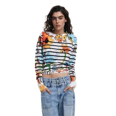 Desigual Leknes Striped Jumper with Flowers 25SWJF21 White