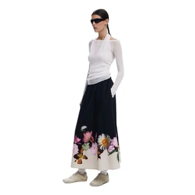 Desigual Lindo Black Floral Midi Skirt 25SWFW18