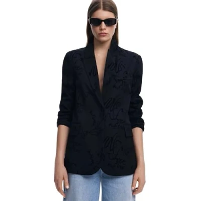 Desigual Long Beach Black Lettering Blazer Jacket 25SWEW22