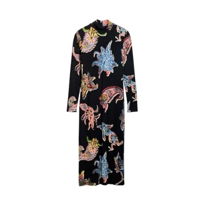Desigual Melted Paisley Ribbed Midi Dress Designed by Mr. Christian Lacroix 25SWVK31 Black