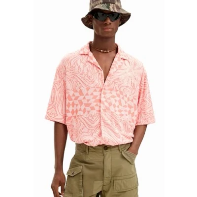 Desigual Relaxed fit Jacquard knit with marble look and geometry Collar Short sleeves 0