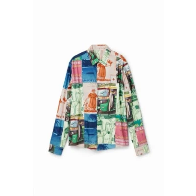 Fit: Regular Patchwork of stamps of the world with serrated finish on the front and prints on the back.