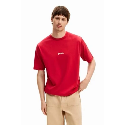 Desigual Men's Man Knit T Shirt Short Sleeve, red, Collar Size: 17.5