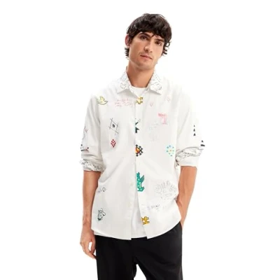 Desigual Regular fit Printed drawings and messages, as if made by hand Shirt collar Long sleeves 0