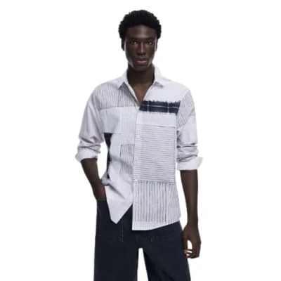 Desigual Men's Man Woven Shirt Long Sleeve T, Black, M