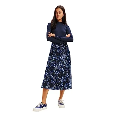 Desigual Michigan Navy Poloneck Top & Flared Midi Skirt Dress 23WWVK11