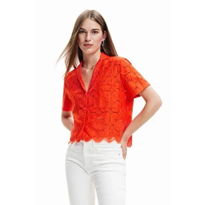 Desigual Preston Red Short Sleeve Lace Shirt 23SWCW09 3074