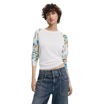 Desigual Randers White Jumper with Floral Arms 25SWJF31