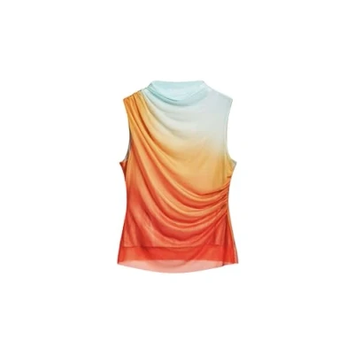 Fit: Slim Color: Multicolor Neckline: Round Sleeveless Gradient sunset print