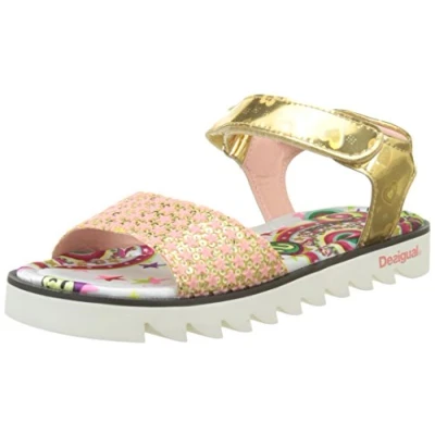 Stylish Design: Showcase a golden smile with these Desigual shoes, designed for girls who love to stand out in a crowd Comfortable Fit: Features a man-made insole and adjustable strap for a secure and comfortable fit Material and Construction: Crafted with synthetic material and a synthetic sole, ensuring durability and longevity Perfect for Casual Occasions: Ideal for everyday wear, these sandals are perfect for walking and casual outings Age and Size: Suitable for toddlers, these sandals are available in size 4 (UK) and come with a medium width