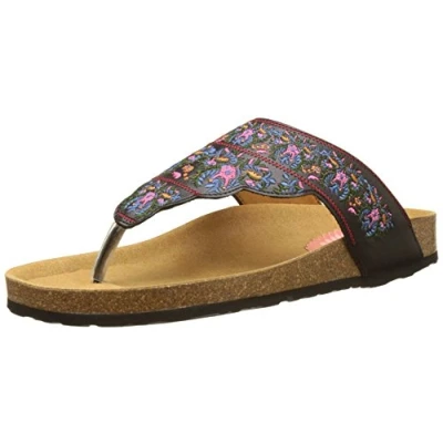Black Upper with Embroidery Detail Toe Post / Thong Style Comfortable Molded Foot Bed