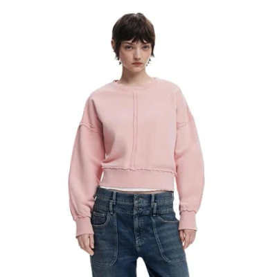 Fit: Regular Color: Solid Neckline: Round Sleeve: Long Frayed stitching