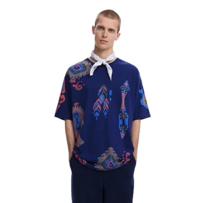 Fit: Regular Color: Multicolor Neckline: Round Sleeve: Short Ethnic print