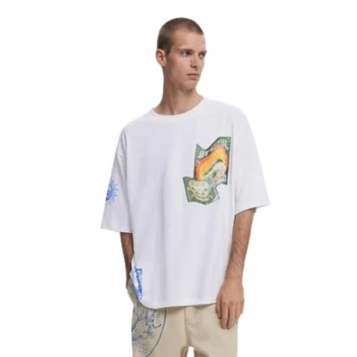 Fit: Regular Arty Print Neckline: Round Sleeve: Short Logo detail in applique