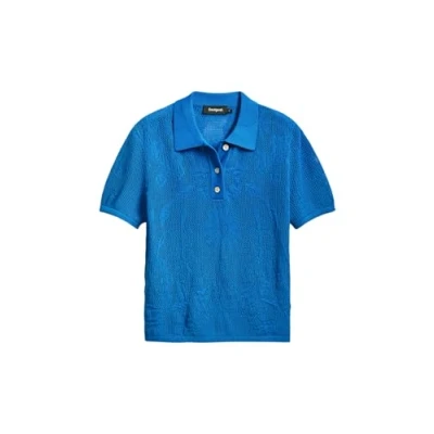 Fit: Regular Color: Solid Neck: Polo type Sleeve: Short Openwork with floral motifs