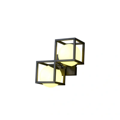 The Desigual Wall Lamp features two lights in a chic matte black design with frosted white shades. Perfect for adding a modern touch to your walls, this fixture enhances any room's ambiance.