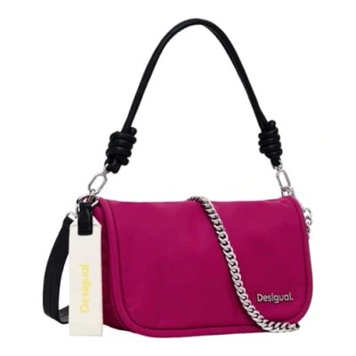 Solid color Interior pockets Zipper closure Several detachable handles and strap Detail in faux leather effect with exterior pocket and Desigual logo