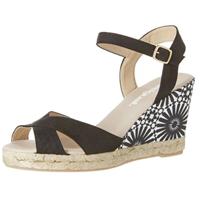 Synthetic Casual covered wedge sandal featuring eye-catching graphics open-toe Adjustable ankle strap Made in Spain
