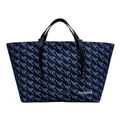 Print of the Desigual logo Zipper closure A compartment Two fixed handles: one short and one long to use over the shoulder as a crossbody Internal details in leather effect