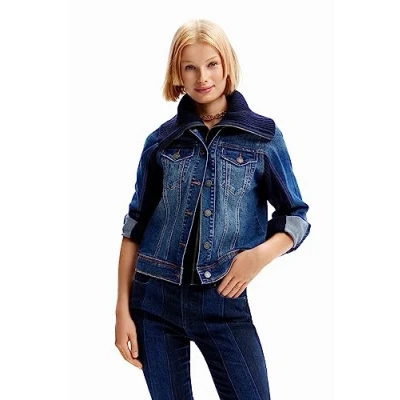 Desigual Regular fit Plain Denim shirt collar and high fabric collar Long sleeves. 2 pockets
