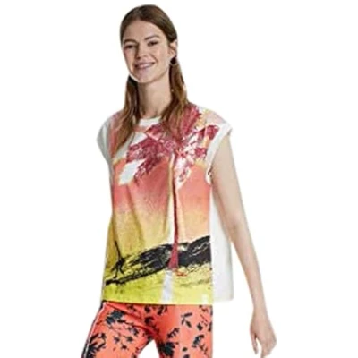 Desigual Women's Ts_Spray Palm T Shirt, White (Blanco 1000), Large