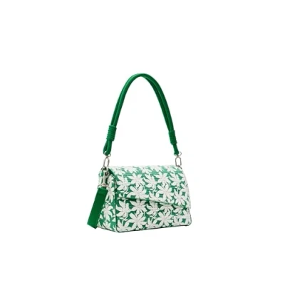 Desigual Floral pattern as a contrast Interior and exterior pockets Magnetic flap and zip 1 compartment 2 removable leather-look handles: short with knots for the hand or shoulder and long, adjustable strap for hanging