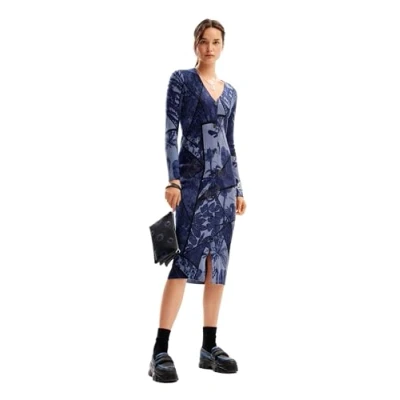 Desigual Women's Woman Flat Knit Dress Long Sleeve Blue