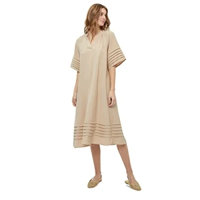 Desires Women's Benita 2/4 Sleeve Midcalf Dress, Cuban Sand Stripe, L