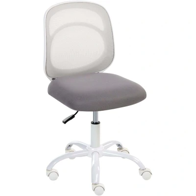 Desk Chair Grey Fabric Upholstery Iron Base Swivel Adjustable Height Armless Home Office Kids Room BLISSFUL