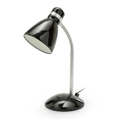 Table/desk lamp with E27 socket for light bulb (not included); the bulb can be LED, incandescent or energy-saving: max 25W. Adjustable chromed metal arm, 120cm cable and switch. Ideal for a student's desk, a child's desk, a study... A classic model that never goes out of style. The elegance of classic style. Lampshade, articulated arm and metal base.
