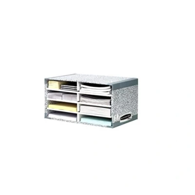 Front channels offer labelling option Stackable for increased space saving Size W490 x D310 x H260mm Eight compartments for easy organisation and identification of your paperwork or literature Sorter can be stacked to maximise your desktop space Made from FSC certified 100% recycled board