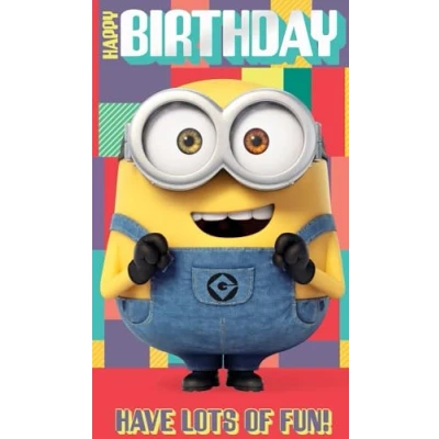 DESIGN THEME: Despicable Me themed birthday card featuring playful and entertaining illustrations in vibrant multicolour design CARD DIMENSIONS: Generous size measuring 22.86 cm x 12.7 cm, providing plenty of space for writing personal birthday messages INTERIOR FEATURES: Blank interior allowing for heartfelt personalised messages to make the celebration extra special PRESENTATION: Decorative pattern with fun elements that capture the excitement of birthday celebrations MANUFACTURER: Professionally crafted by Danilo Promotions Ltd, perfect for creating memorable birthday moments