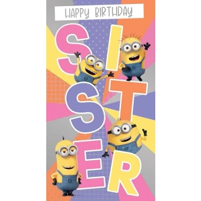 Celebrate the fun and mischief of sisterhood with this vibrant Despicable Me Sister Birthday Card! Featuring the lovable Minions this card is perfect for a sister who loves all things Despicable Me. With playful illustrations and a light-hearted, festive design, it captures the humour and warmth that make this animated family so unforgettable. Whether it's for a sister who's young or young at heart, this card is sure to bring a smile and make her birthday extra special. EUROPE'S NUMBER ONE: Brought to you by Europe's Number One Licensed Publisher: Every Danilo product is 100% Officially Licensed. This guarantees the product has been approved by the Acts themselves and features the current and most up to date designs Bring a smile to your Child: Our fully licensed range of birthday cards make a brilliant and memorable gift to celebrate your Child's birthday. Using the most up to date design. OFFICIALLY LICENSED: Our fully Licensed range of gift wrap & Cards make a brilliant and memorable extra to any gift for a special friend or family member. Using the most up to date design on the market.