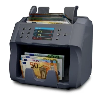 High-Speed Bill Counter: Counting 900 bills per minute. Currency Diversity: Supports EUR, GBP, USD, CAD, MXN. Advanced Technology: CIS sensor and 7 detection methods for maximum security. Versatile and Efficient: Recognition of mixed bills and sum and batch functions. Intuitive Interface: Large LCD display and operation for left and right-handed users.