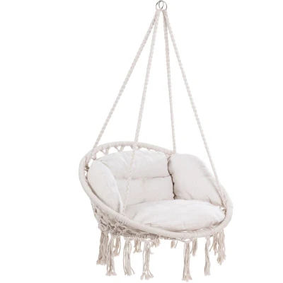 DETEX® Boho Style Hanging 60cm Circular Chair w/2 Cushion Indoor Outdoor Cotton Cream