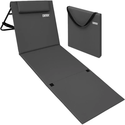 General description The DETEX® Folding Beach Lounger is an all-inclusive beach mat designed for comfort and convenience. With its adjustable backrest and lightly padded surface, it provides the perfect spot for relaxing in the sun. The mat features a small zippered pocket for safely storing valuables, making it ideal for beach outings. Technical specifications Dimensions (LxWxH): 158x56x45.5 cm Dimensions when folded (LxWxH): 52x55.5x4.5 cm Cushion dimensions: 35x10x3 cm Material: Powder-coated steel tube Cover material: 100% polyester Padding material: Mercerised cotton Height adjustment range: 39-45.5 cm Installation Easy to fold and secure with Velcro fasteners. Transportable using the shoulder strap. Usage Ideal for sunbathing and relaxing at the beach. Cover is machine washable at 30°C for easy maintenance. Other information Available in different colors. UV resistant for enhanced durability.