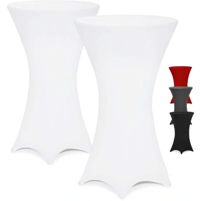 General description Upgrade your bar table in no time with these elegant covers. Transform your bar table into a classy festive table, perfect for celebrations such as banquets, anniversaries, weddings, or barbecues. The covers are designed to fit all standard round bar tables and bistro tables, providing a sleek and sophisticated look. Technical specifications Sizes: Ø60 - 65 cm, Ø70 - 75 cm, Ø80 - 85 cm Height: 120 cm Material: 90% polyester, 10% elastane Usage Quickly attachable to standard round bar tables and bistro tables Easy to clean and washable up to 30°C Crease and wrinkle-free design Other information Available colors: White, black, anthracite, bordeaux-red Scope of delivery: 2x bar table cover in the size and color of your choice