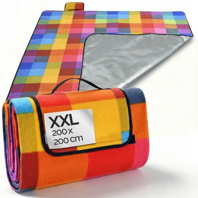 Detex® XL Waterproof Fleece Picnic Blanket 200x200cm Camping Heat Insulated Hand Washable Foldable For 4 6 People Garden Beach Multicoloured Pixel