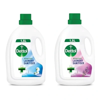 Dettol Antibacterial Laundry Cleanser, Sanitiser Additive, Fresh Cotton and Lavender Multipack, 2x 1.5 L, Pack of 2.