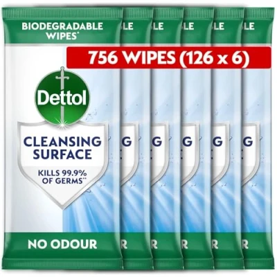 Dettol Antibacterial Wipes, Total 756 Wipes (6 Packs X 126), Cleaning Multi Surface Large Value Pack, Kills 99.99 Percent of Germs, Household Disinfectant