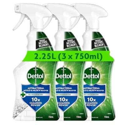 Dettol Mould Remover, Multipack of 3 X 750ml, Total 2.25L, And Mildew Spray, Bleach Bathroom Antibacterial, Disinfectant, Household Cleaners