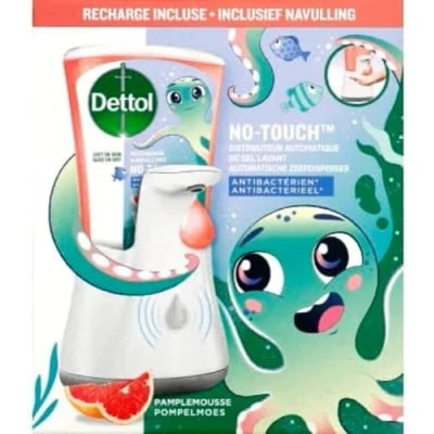 Kit contains Dettol no touch automatic soap dispenser, 250ml grapefruit refill and 3 x AA batteries The washing gel has a formula that reduces the presence of bacteria on the hands: gentle on the skin and protects against germs. It is a cleanliness and protection care for the whole family Refills are used with the No-Touch Dettol dispenser for contactless hand washing Our formula effectively cleans hands and protects against germs. Washing your hands is one of the most effective measures to protect yourself from infections. By teaching your children how to wash their hands well and adopt the right hygiene reflexes, you are helping your whole family stay healthy Use your No-Touch Kit using our range of Dettol refills: Grapefruit, Aloe Vera, Tropical and Shea
