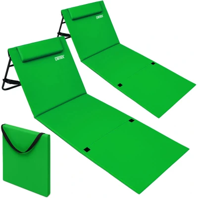Deuba 2x Beach Sun Lounger Mat Padded Backrest Pocket Green