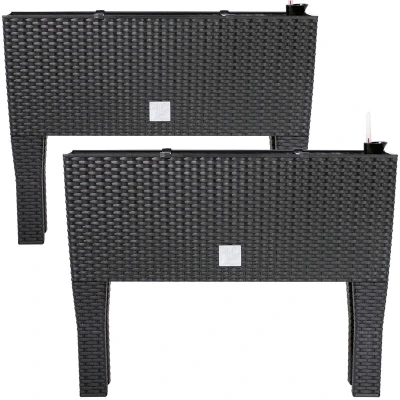 Deuba® 2x Raised Flower Pot Planter Bed 30L 60x25x46cm Water Irrigation System Rattan Look UV Resistant Trough Box with Detachable Feet Legs Anthracite